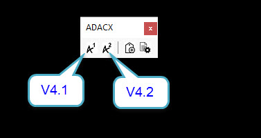 The new toolbar has 2 ADACX start icons, one for 4.1 and one for 4.2. The one you choose when you first start ADACX will be the current ADAC schema version. If you need to switch to the other version you will need to restart Bricscad to fully unload the old schema and load in the new.